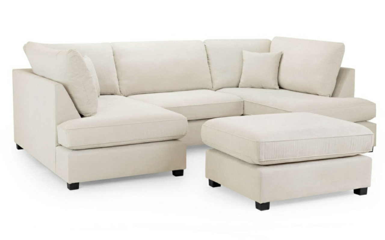 Carnaby Cinema Cream Fabric U Shape High Back Corner Sofa + Footstool