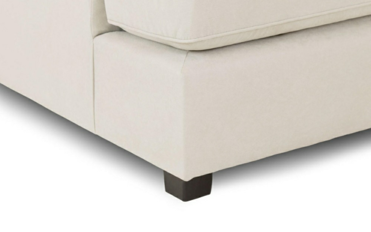 The Carnaby U-shaped sofa, elegantly tailored in Kensington cream fabric as a small corner unit, comes complete with a matching footstool. This sophisticated ensemble combines modern design with functionality, offering a luxurious seating solution that maximizes comfort and style in compact living spaces.