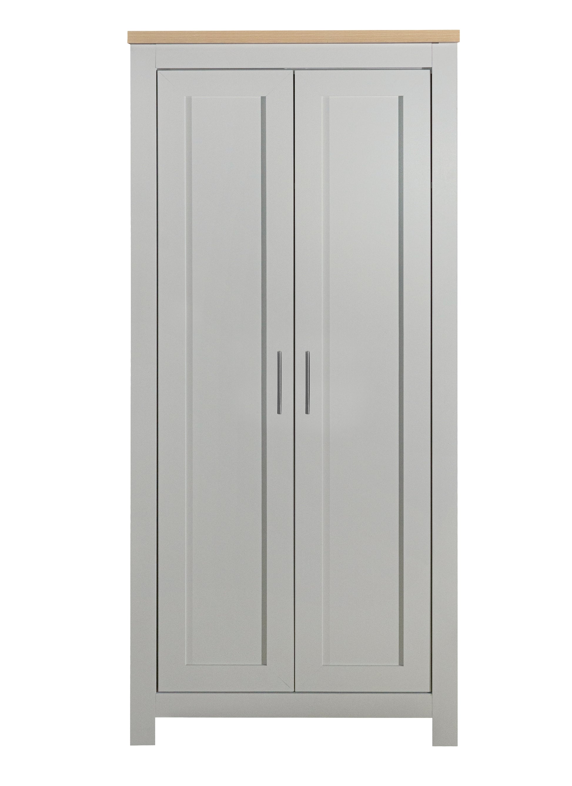 The Highgate 2 door wardrobe is spacious behind double doors, featuring a hanging rail. The doors are finished off with contemporary silver handles.