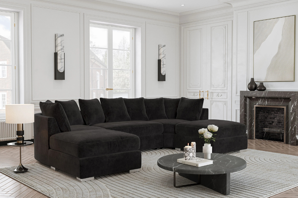 Hampton Black Ferando Fabric Scatterback U Shape Sofa