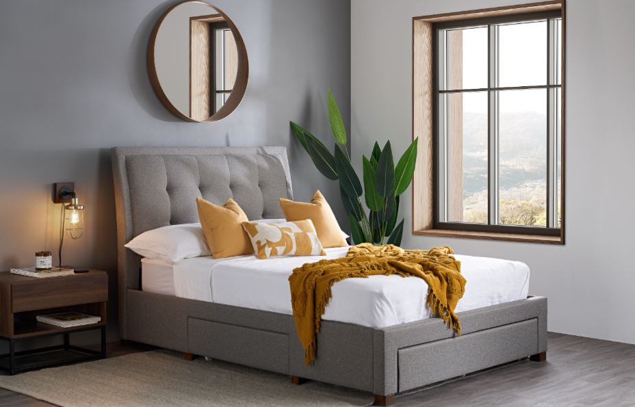Classic and sophisticated, yet functional, the Shelby bed boasts a modern frame and also conceals three useful storage drawers. Upholstered in a beautiful soft grey fabric, this low-based bed features a detailed deep-buttoned headboard. This frame has a sprung slatted base for natural bounce, adjusting to where pressure is exerted most to provide greater comfort. The maximum weight load for the 4"6 frame is 400 kg, and the 5" frame is 450 kg. Please note: Birlea beds are only suitable for a UK standard size mattress and the recommended maximum mattress height is 3200mm.