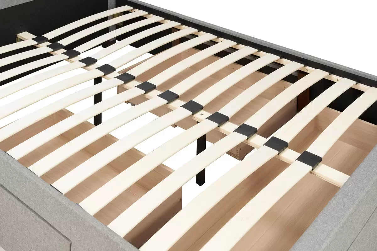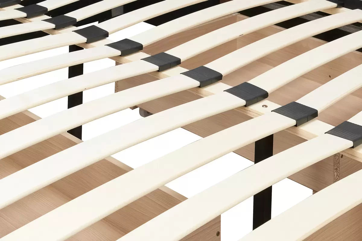 - This frame has a sprung slatted base for natural bounce, adjusting to where pressure is exerted most to provide greater comfort
